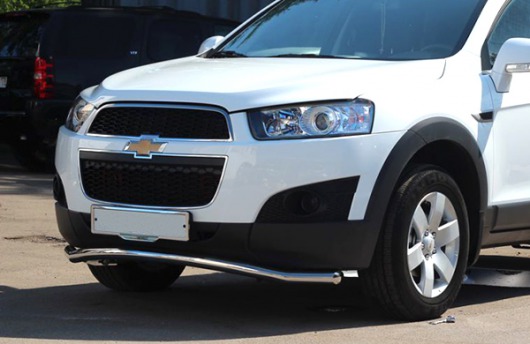 Труба на бампер Chevrolet Captiva защищает передний бампер автомобиля от различных механических повреждений при мелких ДТП и неудачных парковках, а также незаменима при езде по бездорожью. А кроме этого, труба на передний бампер Шевроле Каптива смотрится очень стильно и эффектно.