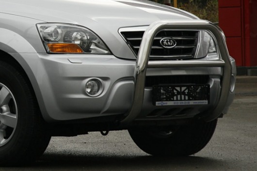 Защитная решетка переднего бампера предназначена для автомобилей Kia Sorento от 2006 г.в. Вам не придется подгонять передний кенгурятник под размеры кузова вашего авто. И с монтажом проблем не возникнет: установка кенгурятника Kia Sorento производится в штатные отверстия, а значит, необходимость сверлить кузов отпадает.