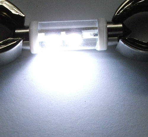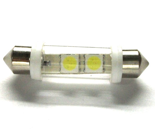 Светодиодная лампа 31-41 2SMD  - это светодиодная лампа в стеклянной колбе, которая сконструирована на базе 2 SMD чипов. Эта сверхяркая светодиодная лампа может быть установлена в салон или подсветку номерного знака.