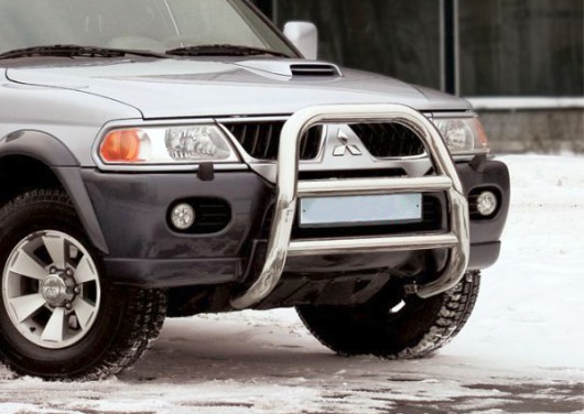 Передняя решетка Mitsubishi Pajero Sport (кенгурятник) – это защитная дуга на бампер из нержавеющей стали диаметром 76 мм.