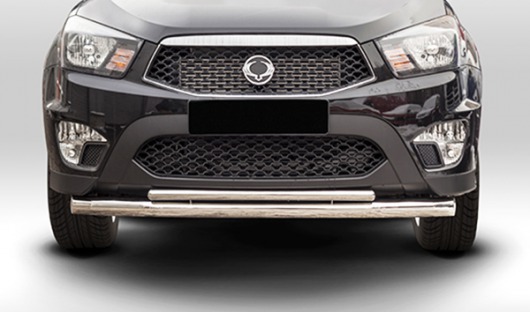 Защита переднего бампера для SsangYong Actyon Sport – это двойная труба на бампер из нержавеющей стали диаметром 76/42 мм.