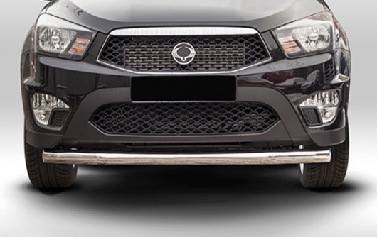 Защита переднего бампера труба предназначена для автомобилей SsangYong Actyon Sport от 2012 г.в. Вам не придется подгонять защиту под размеры бампера вашего авто. И с монтажом проблем не возникнет: установка защиты переднего бампера производится в штатные отверстия, а значит, необходимость сверлить кузов отпадает.