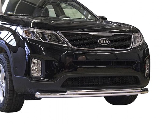 Защита переднего бампера для Kia Sorento – это двойная труба на бампер из нержавеющей стали диаметром 60/42 мм.