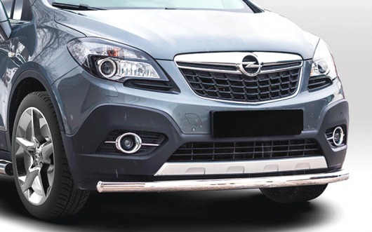 Труба на бампер Opel Mokka защищает передний бампер автомобиля от различных механических повреждений при мелких ДТП и неудачных парковках, а также незаменима при езде по бездорожью. А кроме этого, труба на передний бампер Опель Мокка смотрится очень стильно и эффектно.