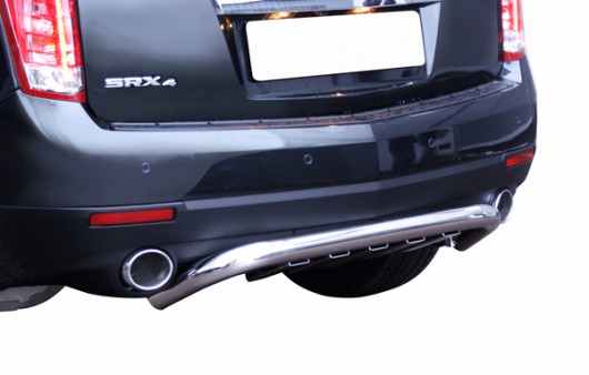 Труба на задний бампер Cadillac SRX защищает задний бампер автомобиля от различных механических повреждений при столкновениях на дороге и неудачных парковках. А кроме этого, защита заднего бампера для Кадиллак SRX — это дополнительная деталь тюнинга.