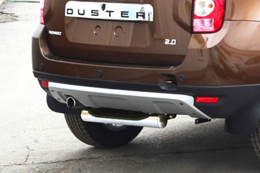 Труба на задний бампер Renault Duster защищает задний бампер автомобиля от различных механических повреждений при столкновениях на дороге и неудачных парковках. А кроме этого, ступень на задний бампер для Рено Дастер — это еще и деталь тюнинга, а также дополнительная подножка для авто. Красиво и практично.
