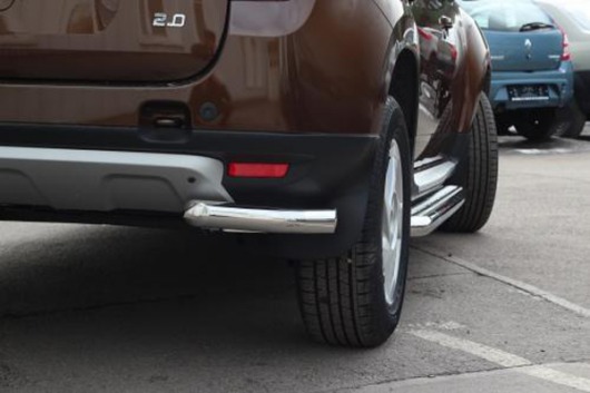 Защита заднего бампера для Renault Duster – это защитные уголки на бампер из нержавеющей стали диаметром 60 мм.