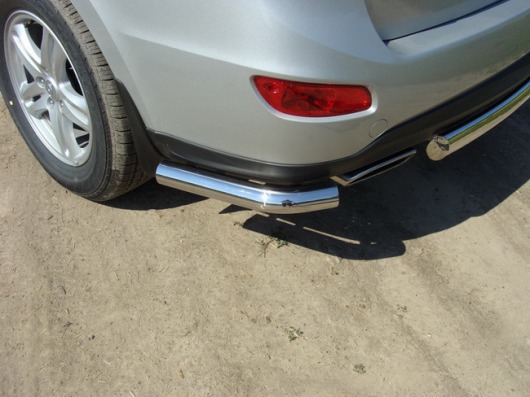 Защита заднего бампера для Hyundai Santa Fe – это защитные уголки на бампер из нержавеющей стали диаметром 76 мм.