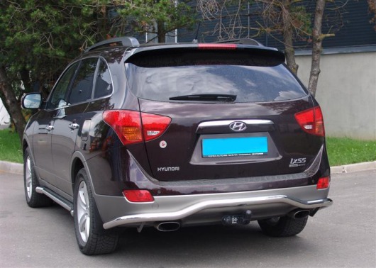 Волна на задний бампер Hyundai IX55 защищает задний бампер автомобиля от различных механических повреждений при столкновениях на дороге и неудачных парковках. А кроме этого, защита заднего бампера для Хендай — это дополнительная деталь тюнинга.