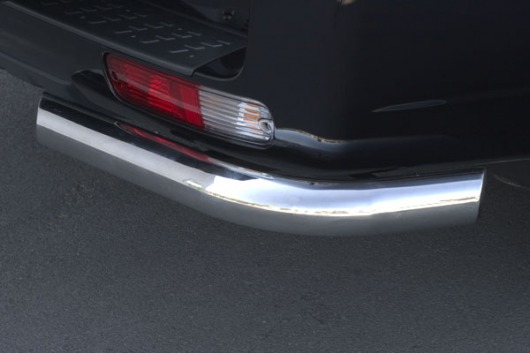Защита заднего бампера для Mitsubishi Pajero III – это защитные уголки на бампер из нержавеющей стали диаметром 76 мм.