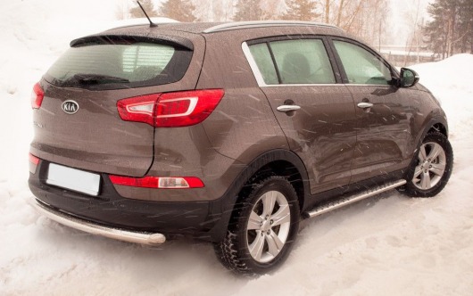 Труба на задний бампер Kia Mohave защищает задний бампер автомобиля от различных механических повреждений при столкновениях на дороге и неудачных парковках. А кроме этого, защита заднего бампера для Киа Мохаве — это дополнительная деталь тюнинга.