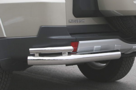 Защита заднего бампера для Mitsubishi Pajero IV – это двойные защитные уголки на бампер из нержавеющей стали диаметром 76/42 мм.