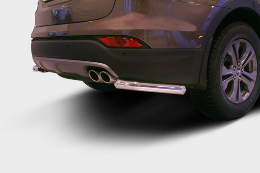Защита заднего бампера для Hyundai Santa Fe – это защитные уголки на бампер из нержавеющей стали диаметром 60 мм.