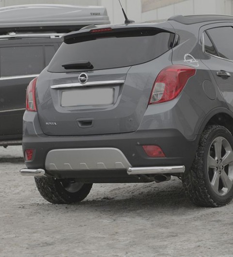 Уголки на задний бампер Opel Mokka защищают задний бампер автомобиля от различных механических повреждений при столкновениях на дороге и неудачных парковках. А кроме этого, защита заднего бампера для Опель Мокка — это дополнительная деталь тюнинга.