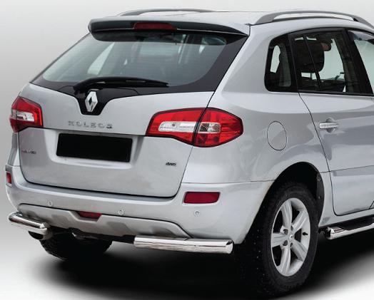 Защита заднего бампера для Renault Koleos – это защитные уголки на бампер из нержавеющей стали диаметром 76 мм.