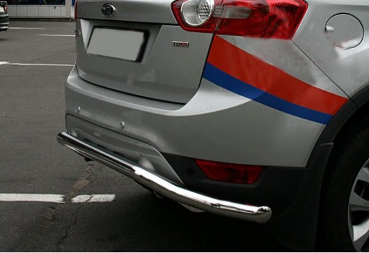 Защита заднего бампера труба предназначена для автомобилей Ford Kuga от 2013 г.в. Вам не придется подгонять защиту под размеры бампера вашего авто. И с монтажом проблем не возникнет: установка защиты заднего бампера производится в штатные отверстия, а значит, необходимость сверлить кузов отпадает.