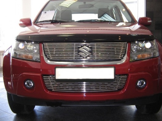 Декоративная накладка на решетку радиатора Suzuki Grand Vitara — это яркая деталь тюнинга плюс эффективная защита радиатора вашего авто. Как декоративный аксессуар, накладка на радиатор станет оригинальным дополнением к внешнему виду автомобиля. С другой стороны, она защитит решетку радиатора от негативного воздействия пыли, грязи и влаги, а также от механических повреждений.