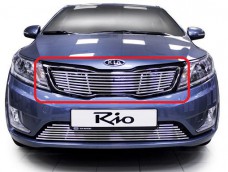 Декоративная накладка на решетку радиатора Kia Rio, хром — это яркая деталь тюнинга плюс эффективная защита радиатора вашего авто. Как декоративный аксессуар, накладка на радиатор станет оригинальным дополнением к внешнему виду автомобиля. С другой стороны, она защитит решетку радиатора от негативного воздействия пыли, грязи и влаги, а также от механических повреждений.
