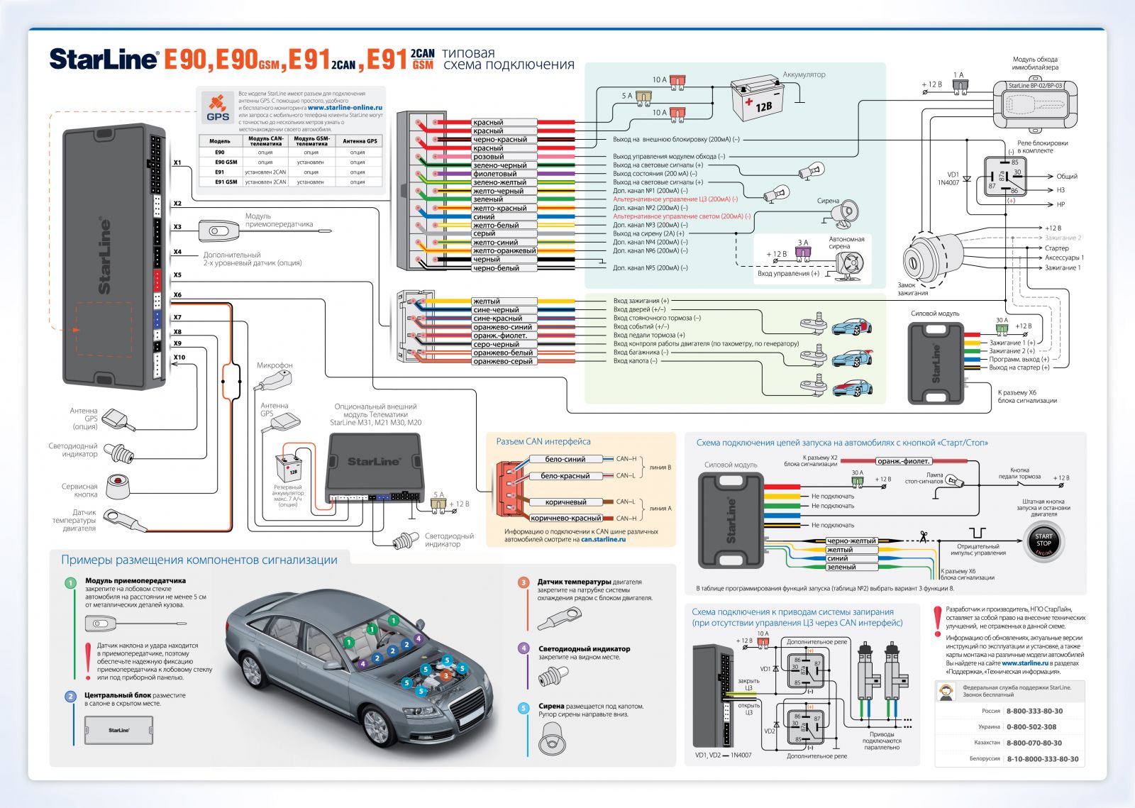 Скачать инструкцию по установке автомобильной сигнализации StarLine E90 GSM.