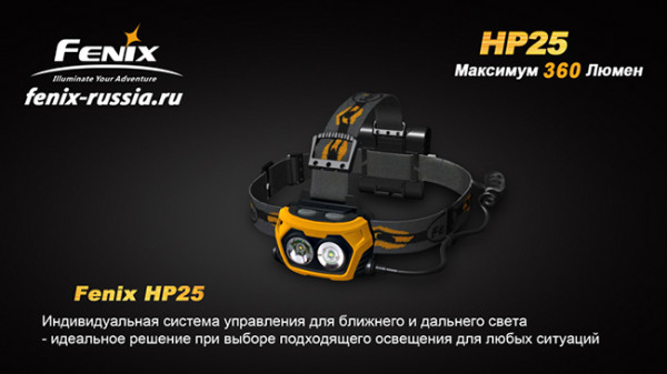 Универсальный налобный фонарь Fenix HP25 — новинка от компании Fenix. Особенностью модели, выделяющей её из прочих, является наличие двух независимых светодиодов Cree XP-E, позволяющих фонарю работать одинаково успешно в абсолютно разных условиях. Фонарь оптимизирован для работы при низких температурах и идеально подходит для любителей экстремального отдыха, такого как альпинизм.