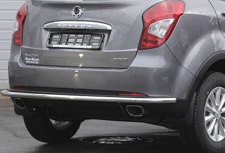 Труба на задний бампер SsangYong Actyon защищает задний бампер автомобиля от различных механических повреждений при столкновениях на дороге и неудачных парковках. А кроме этого, защита заднего бампера для Санг Енг Актион — это дополнительная деталь тюнинга.
