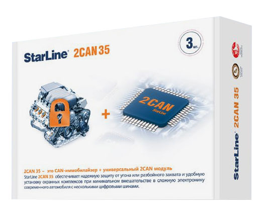 StarLine 2CAN 35 – охранное устройство, сочетающее в себе функции иммобилайзера и 2CAN модуля. Прибор уникален тем, что даёт возможность защиты вашего автомобиля сразу несколькими способами. Модуль идентифицирует водителя с помощью PIN-кода, блокирует двигатель в случае угона и даёт возможность управлять замком капота и двигателем. Средство от угона устанавливается на авто как в качестве самостоятельного «телохранителя», так и в совокупности с охранными системами StarLine и других производителей.