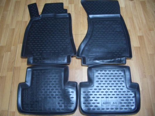 • Изготовлены из качественного материала. Полиуретановые автомобильные коврики для салона Ауди А4 произведены из высококачественного материала, который держит форму и не пачкает обувь. К тому же, этот материал очень прочный (его, к примеру, не получится проткнуть каблуком).