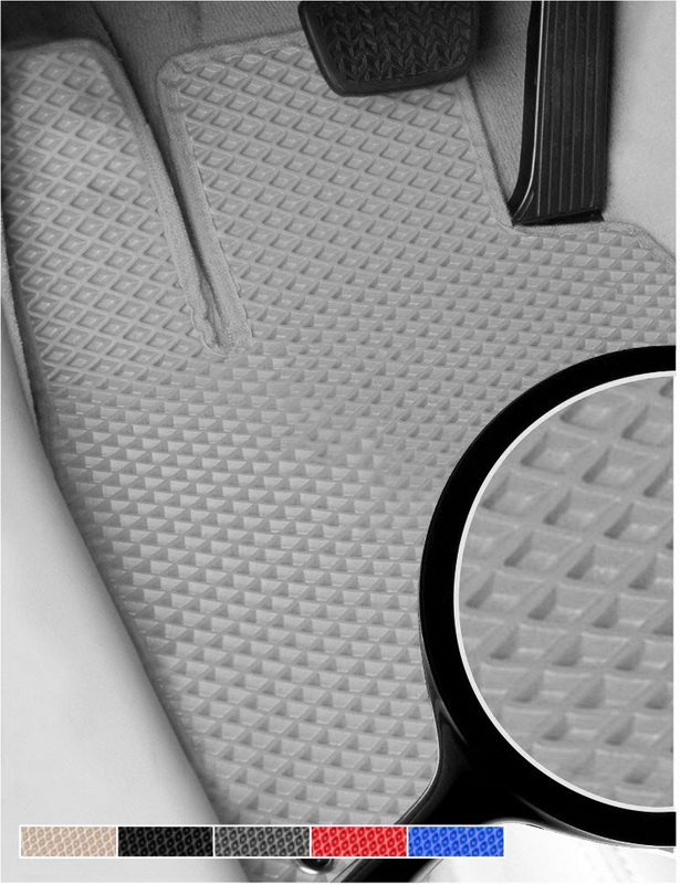 • Благодаря ячеистой структуре материала, грязь не будет разноситься по салону автомобиля. 1 квадратный метр коврика способен впитать 2.5 литра воды!