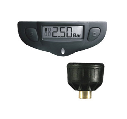 Информация о состоянии шин выводится на монитор, который легко крепится на зеркало заднего вида при помощи липучки. На монохромном дисплее с подсветкой будут отображаться данные о давлении в шинах.