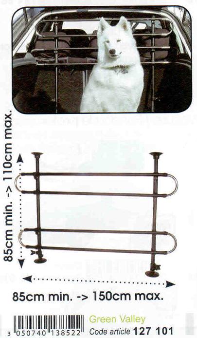 Решетка в машину для собак Green Valley – это оригинальная конструкция, которая представляет собой 2 металлические стойки — распорки между полом и крышей, на которые крепятся 2 овальные секции. Стойки регулируются по высоте (от 85 до 110 см), а секции — по ширине (от 85 до 150 см). Таким образом, разделительная сетка для животных подойдет для багажников любого размера.