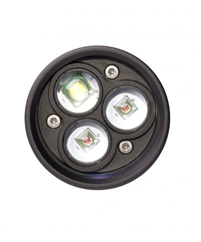 Главной особенностью фонаря для подводной охоты и дайвинга Ferei W156 XML является наличие сразу 3 светодиодов! Один из них (CREE XM-L) светит холодным белым светом, два других (CREE XP-E) – красным. Мощность также различна. К примеру, белый светодиод обладает мощностью 800 лм, а красные – 500. Тем самым, белый вариант подходит, если вы оказались в не слишком прозрачной воде, а красный прекрасно показывает себя там, где нужно сберечь ресурс аккумулятора. На каждом из диодов имеется по 2 режима яркости.