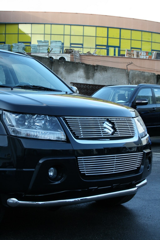 Тюнинг. Хромированная накладка на воздухозаборник Suzuki Grand Vitara, несмотря на небольшой размер, сделает «лицо» вашего автомобиля еще более стильным и привлекательным.