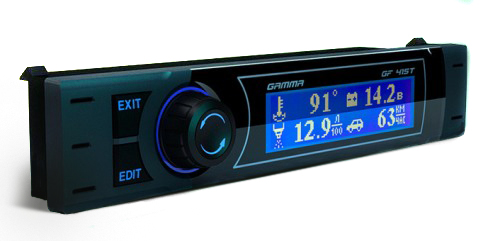 Бортовой компьютер Gamma GF 415T имеет новый высококонтрастный графический дисплей, который произведен по технологии, обеспечивающей морозоустойчивость и оптимальный угол обзора. Значительно усовершенствован диапазон регулирования яркости экрана. Два мультидисплея, переключение между которыми осуществляется нажатием всего лишь одной клавиши, позволит сэкономить время и обеспечит большую сосредоточенность водителя на процессе вождения.