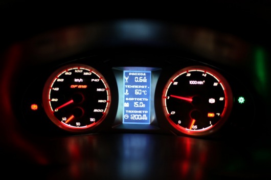 Важная часть GF-818 — бортовой компьютер, управлять которым довольно просто. Для этого нужно воспользоваться специальным подрулевым переключателем, очень удобным и доступным в любой момент. Управлять автомобильным компьютером можно и с помощью поворотного энкодера, расположенного прямо на комбинации приборов.