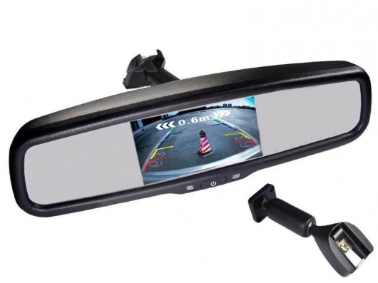 Салонное зеркало снабжено большим экраном, который автоматически включается, если вы даёте задний ход. Если подключить к зеркалу с монитором камеру заднего вида, вы увидите на экране всё, что она снимает.