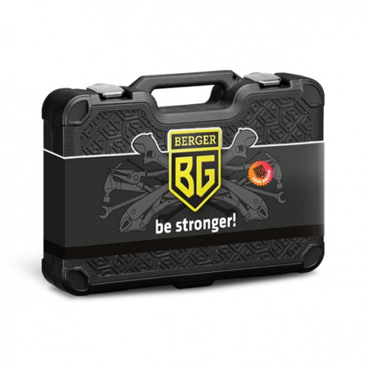 Весь набор инструментов BERGER BG141-1214 находится в оригинальном и стильном кейсе. Чемодан изготовлен из высокотехнологичного пластика с добавлением резины. Такая конструкция делает его очень ударопрочным и стойким к низким температурам.