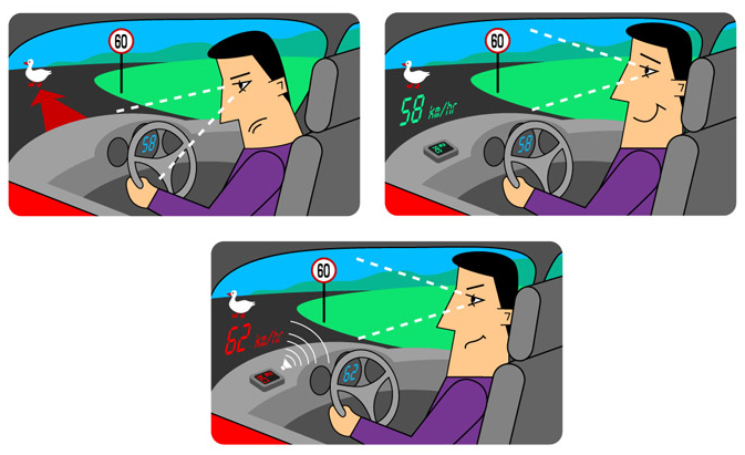 • Безопасность. Благодаря проекции на стекло Carax HUD CRX-3111 вы обеспечиваете не только свою безопасность, но и безопасность окружающих. Ведь даже на скорости 60 км/ч вам потребуется как минимум 1 секунда, чтобы посмотреть на показания проектора. А за это время автомобиль проезжает целых 16 метров без вашего участия!