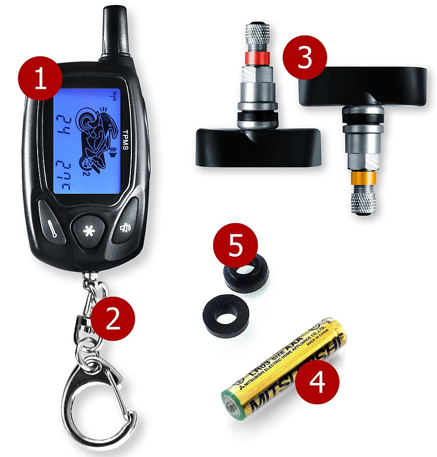 В каждое колесо устанавливается (крепится к клапану) блок датчиков контроля состояния колеса. Блоки очень легкие, что позволяет вам без проблем производить балансировку колес после сборки. Датчик давления и температуры в шинах определяет только текущие показания каждые 5 секунд.