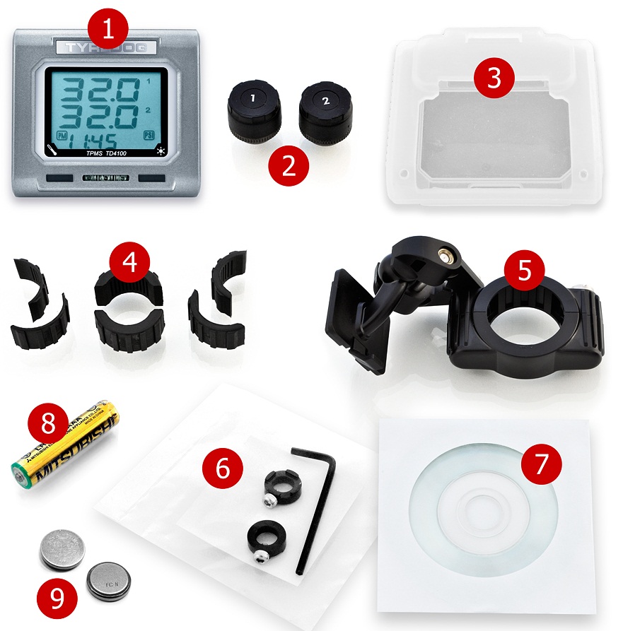 Беспроводные датчики накручиваются на колесные вентили. После установки элементов питания, датчик начинает измерять давление и температуру. Полученные данные передаются на LCD-дисплей и сразу же отображаются на экране. Если показатели выходят за пределы, которые вы устанавливаете, система предупреждает при помощи мигания подсветкой дисплея.