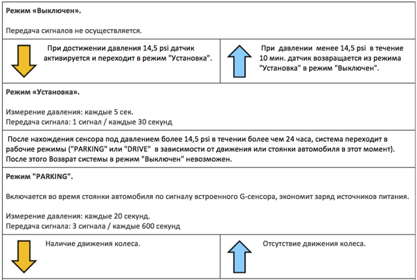 В зимнее время колеса с датчиками можно хранить в сухом месте при температуре до -40 °С. Следует поддерживать колеса накаченными, иначе внутренние датчики будут постоянно посылать сигнал-предупреждение. От этого батарейки садятся быстрее.
