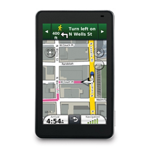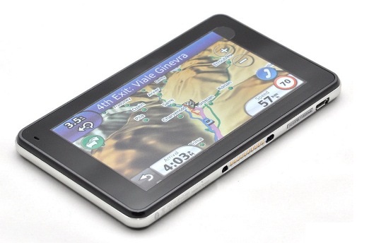 Как и у iPhone, у данной модели навигатора экран не обрамляется никакими бортиками. Встроенный датчик положения экрана автоматически переворачивает изображение при поворотах корпуса. Горизонтальная ориентация довольно привычна в подобного рода устройствах, а вот вертикальная пригодится для пешеходного применения этого навигатора - его удобно держать так, как многие привыкли держать свой мобильный телефон.