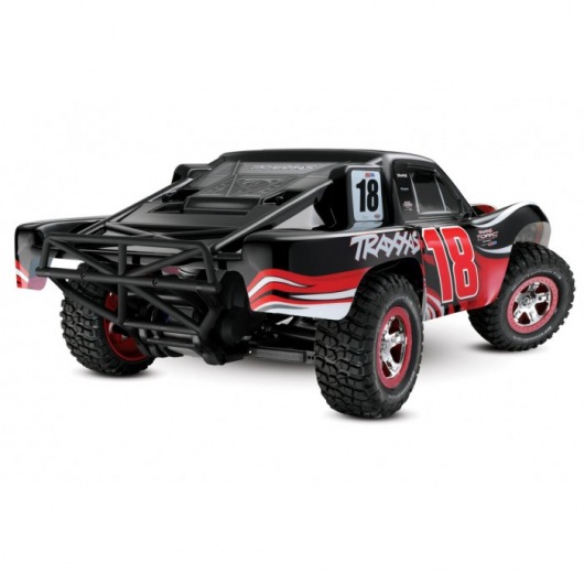 Радиоуправляемый внедорожник Traxxas Slash (TQ) - TRX58034 имеет задний привод. Машина на пульте управления оснащена мощным электродвигателем Тraxxas Titan 550 12T, регулятором оборотов Traxxas XL-5 и емким аккумулятором NI-MH 8.4v 3000mAh. Это позволяет авто разогнаться до 50 км/ч. Кроме того, дизайн кузова радиоуправляемого грузовика в точности повторяет оформление реальных автомобилей, участвующих в гонках.