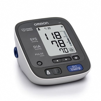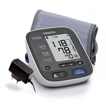 Контроль пульса и уровня АД. Автоматический тонометр Omron M5 выдает сигнал о неритмичном сердцебиении и повышении давления.