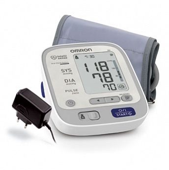 Автоматический тонометр на плечо Omron M6 для измерения артериального давления с двойной проверкой точности имеет универсальную веерообразную манжету для руки с окружностью 22-42 см. Она надевается на плечо и хорошо подходит для взрослых и детей. Индикаторы движения, аритмии, правильной фиксации манжеты и уровня АД, делают измерение более точным и комфортным.