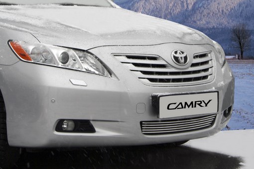 Тюнинг. Накладка на воздухозаборник Тойота Кэмри, несмотря на небольшой размер, сделает «лицо» вашего автомобиля еще более стильным и привлекательным., особенно в сочетании с накладкой на решетку радиатора Toyota Camry.