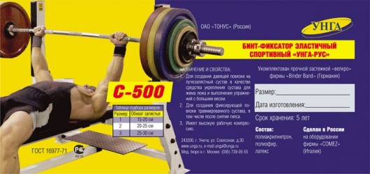 Эластичный спортивный бинт "УНГА-РУС" С-500 предназначен для создания давящей повязки на запястье в качестве средства укрепления сустава для жима лежа и выполнения упражнений с большим весом. Имеет высокую рабочую компрессию.