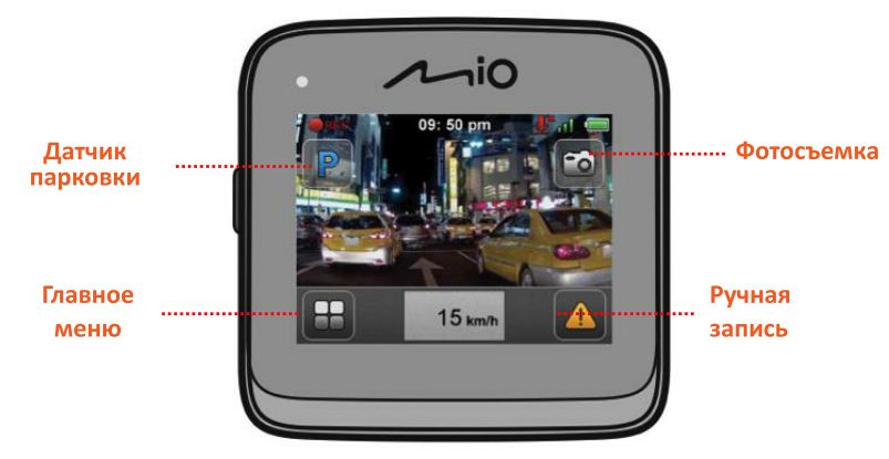 • На панели автовидеорегистратора есть только 1 кнопка включения. А все настройки осуществляются легкими касаниями сенсорного экрана — быстро, легко и удобно.