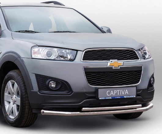 Защита переднего бампера для Chevrolet Captiva от 2014 г.в. – это двойная труба на бампер из нержавеющей стали диаметром 60/42 мм.
