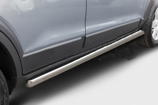 Боковые пороги-подножки сделаны специально для автомобилей Chevrolet Captiva от 2014 г.в., поэтому устанавливаются достаточно просто и без повреждений корпуса. Помимо этого, стальные пороги-трубы для Шевроле Каптива смотрятся очень стильно и эффектно. Они добавят вашему авто еще больше солидности и внушительности.