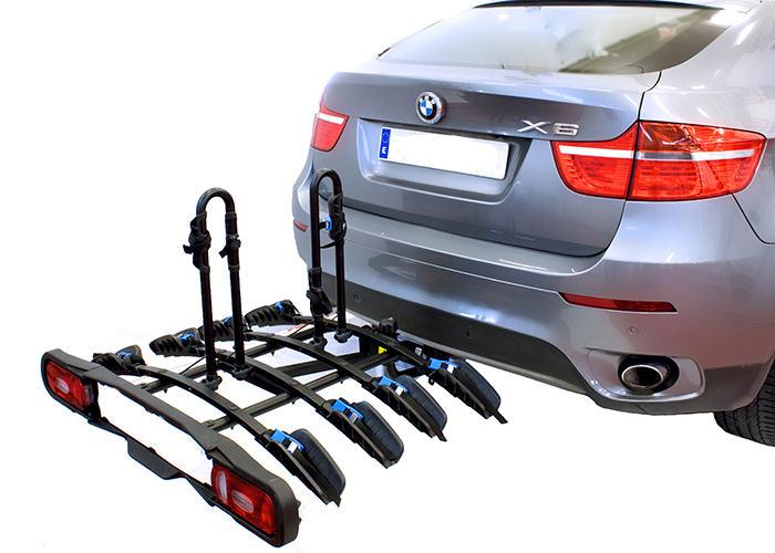 Велобагажник TowCar-B4 — простое и надежное универсальное велосипедное крепление на фаркоп, с помощью которого вы можете перевозить до 4-х велосипедов одновременно на дальние расстояния. Этот велосипедный багажник включает в себя панель для задних фонарей и номерного знака. С такой конструкцией вы можете быть уверенными, что багажник для велосипеда, установленный на фаркоп, не закроет собой важные элементы задней части кузова.